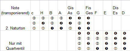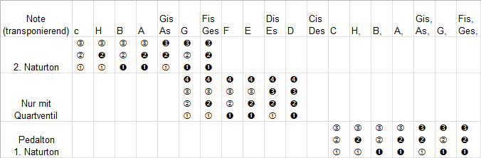 Unterhalb dieser Töne, die man nur mit Quartventil erzeugen kann,