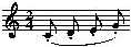 Noten mit Punkten und Bindebogen bezeichnen die Strichart Jeté oder Ricochet.